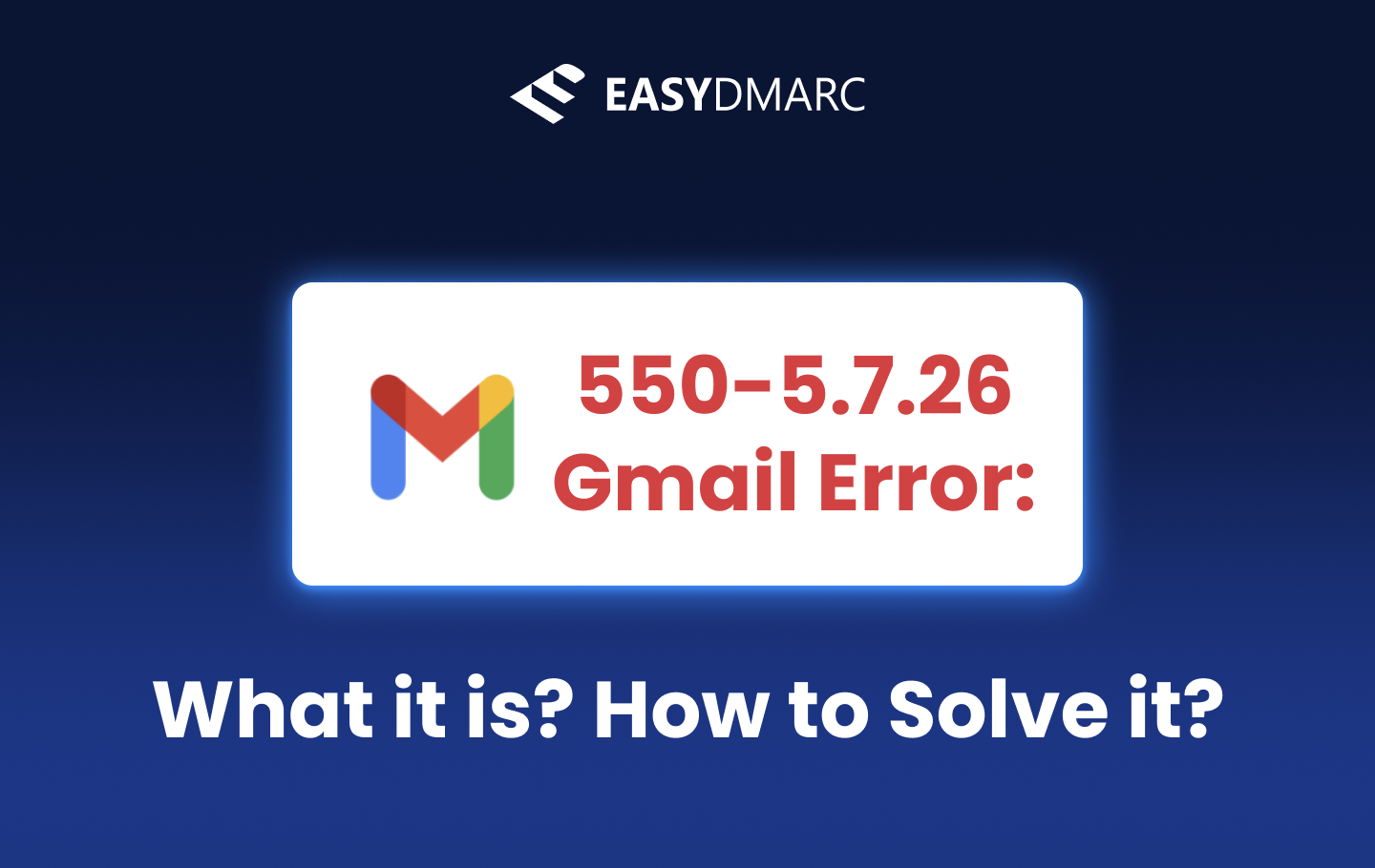 Gmail returns 550 5.7.26 when an email fails authentication checks and your DMARC policy or Gmail’s filters decide the message is unauthenticated. Common triggers are missing SPF entries, failing DKIM signatures, or DMARC alignment failure.