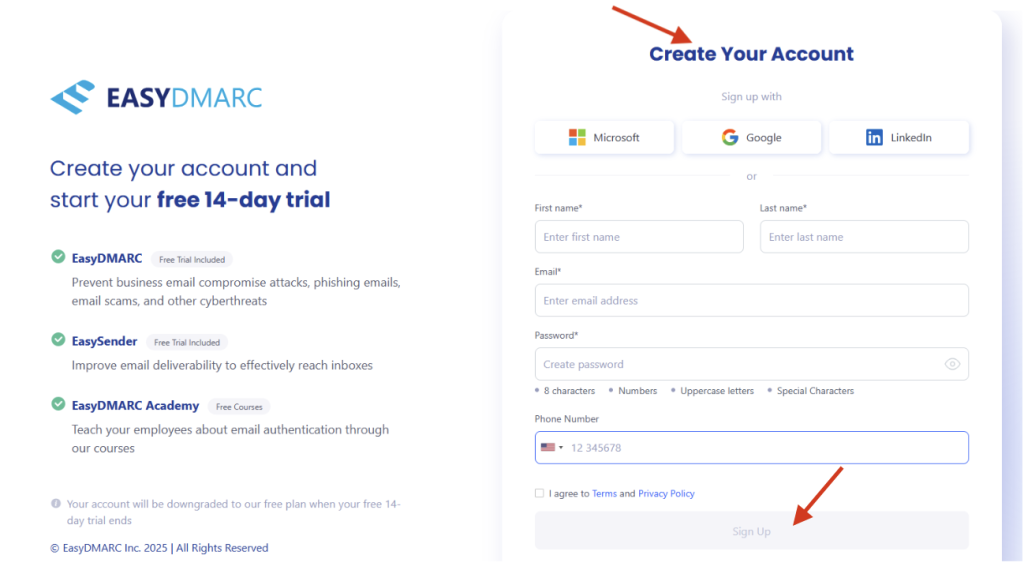 You can sign up with Microsoft, Google, LinkedIn, or your email.