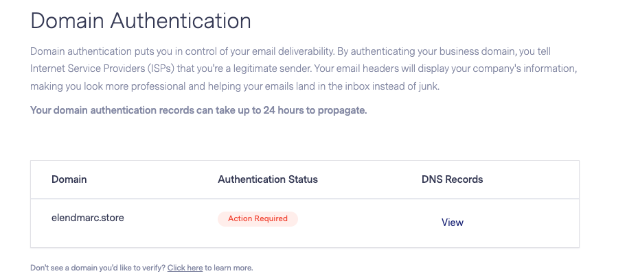 - Then, select Domain Authentication. Here you will see the domains that are available to authenticate.