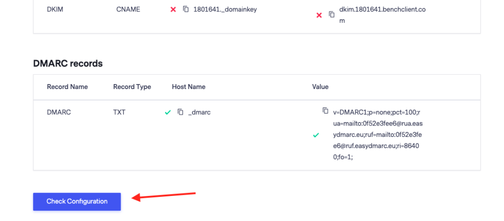 Once the records are added scroll down and click on “Check Configuration” button to verify the setup.