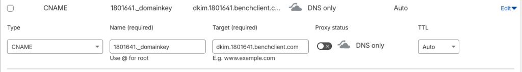 The screenshot below will show you an example of the DKIM record. We’ll be using CloudFlare for this example.