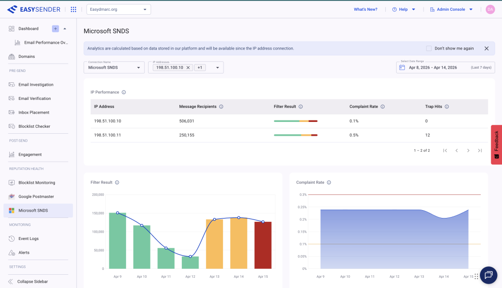 Together, they allow IT teams to not only define who can send, but to continuously monitor how those systems behave and how they impact the reliability of email over time.