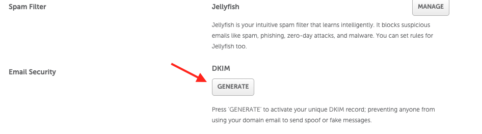 4. Click on the Generate button under DKIM: