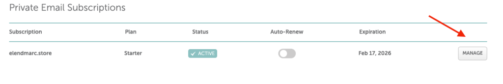 3. Then, click on Manage next to your domain: