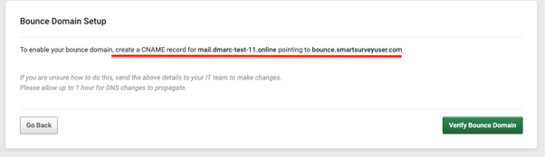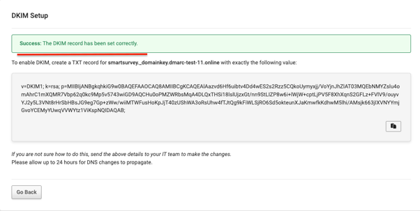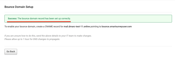 10. Click “Go back” and congratulations, your domain is verified. Moving forward, your emails sent out from SmartSurvey will pass the DMARC checks.