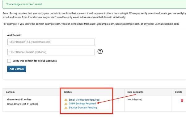 Once you verify your email, pass on to the next step, which is displayed as “DKIM settings required”.