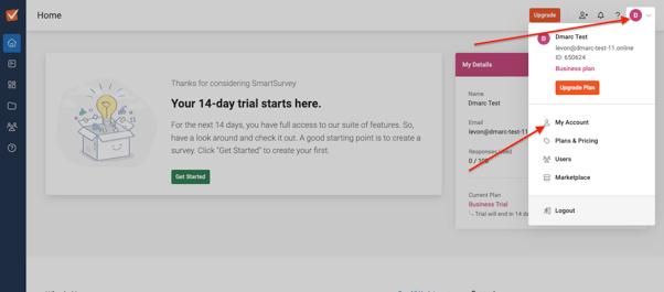 1. Log in to your SmartSurvey account and navigate to “My Account” section from the profile