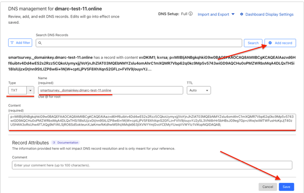 5.  Add the TXT type DNS record to your DNS zone (in this example, it’s Cloudflare).